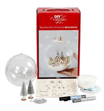 6 топки, изкуствен сняг, 6 Colortime маркери, 1 бяло блестящо лепило, бяла сатенена панделка.