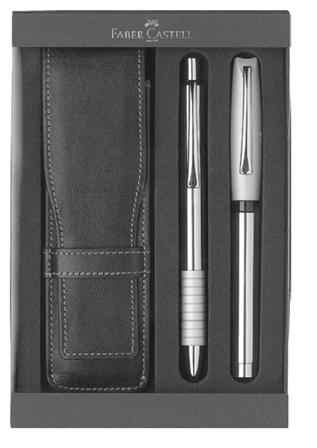 Стилен комплект, който съдържа калъф за две пишещи средства, изработен от екокожа, химикалка и писалка от серия Essentio.
