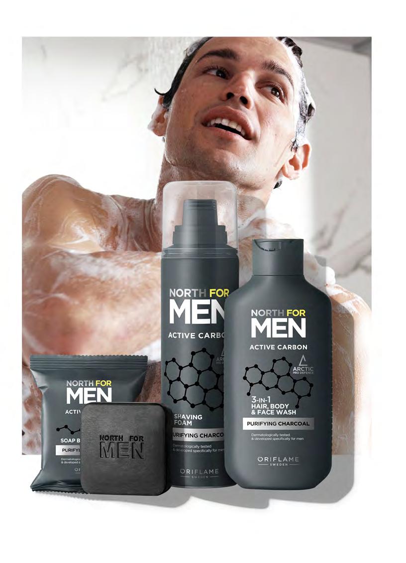 Съдържащ магнезий, градински чай и Arctic Pro Defence, North For Men Sensitive предпазва кожата от уврежданията, причинени от замърсяването, прави кожата хидратирана, а косата укрепена.