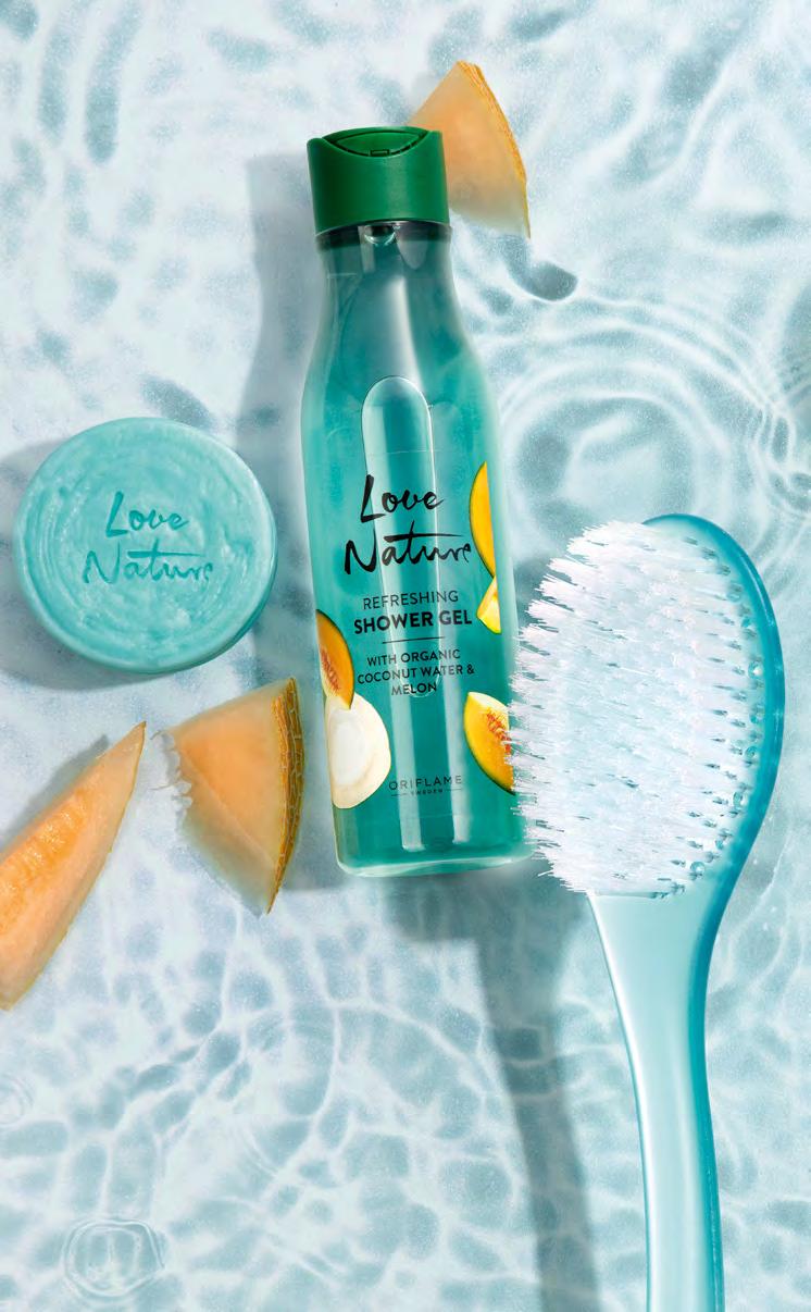 Освежаващ гел за душ с органични екстракти от кокосова вода и пъпеш Love Nature