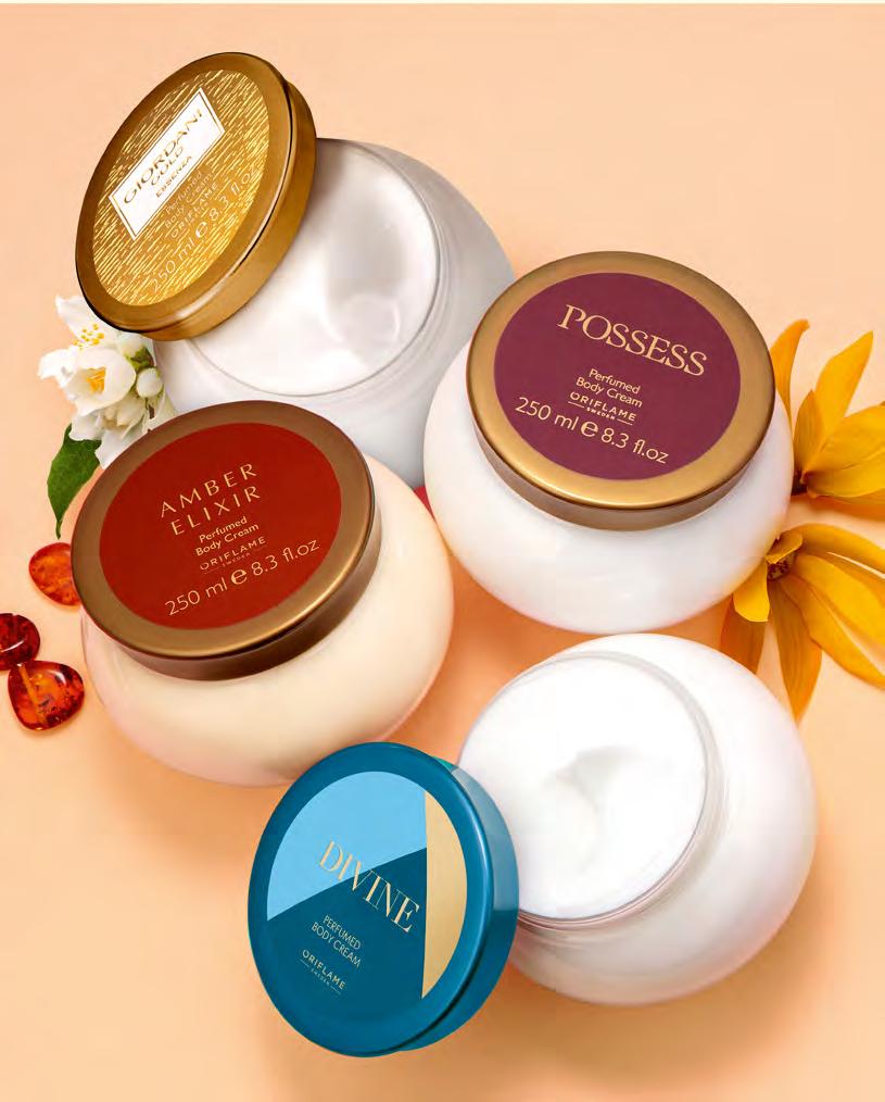 ВСЕКИ АРОМАТЕН КРЕМ ЗА ТЯЛО САМО ЗА 42206 Ароматен крем за тяло Giordani Gold Essenza 250 мл 21.00 лв. 42504 Ароматен крем за тяло Amber Elixir 250 мл 21.00 лв. 42831 Ароматен крем за тяло Possess 250 мл 21.00 лв. 41545 Ароматен крем за тяло Divine 250 мл 21.00 лв. ананас, иланг-иланг, индонезийско пачули мандарина, хелиотроп, кехлибар калабрийски бергамот, портокалов цвят, дървесни нотки от Тоскана виолетка, лилия и фрезия, сандалово дърво