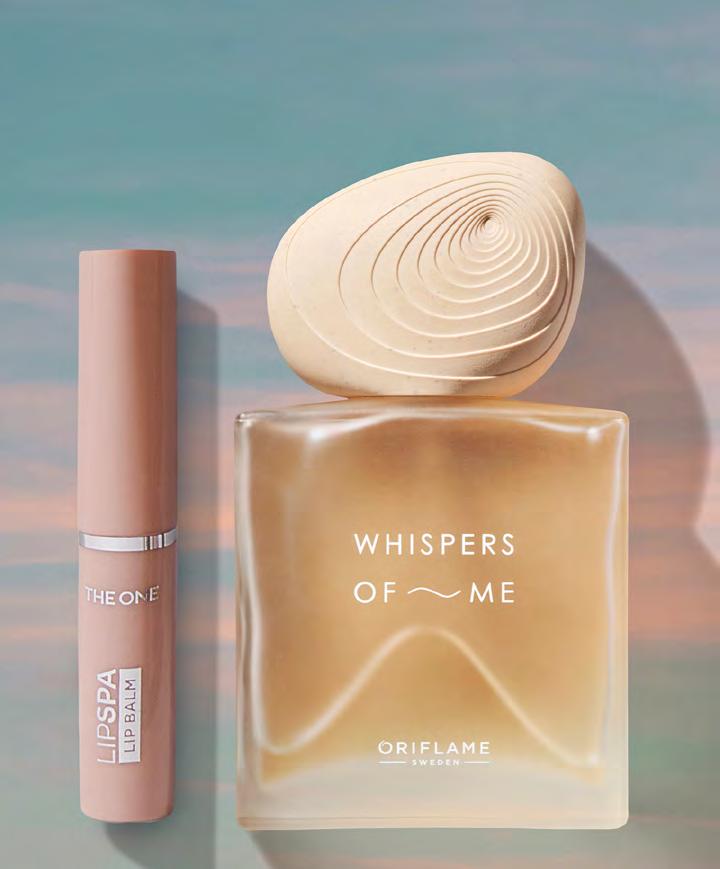 ЧУВСТВЕНО НАШЕПВАНЕ ОТ ВАШАТА КОЖА И УСТНИ Омагьосвайте с вашия привлекателен аромат, докато устните ви са сияйни и хидратирани - перфектните партньори за вашите слънчеви летни дни. БАЛСАМ ЗА УСТНИ ОТ СТР.5 ПОДАРЪК ПРИ ПОКУПКА НА ПАРФЮМНАТА ВОДА WHISPERS OF ME 40809 4