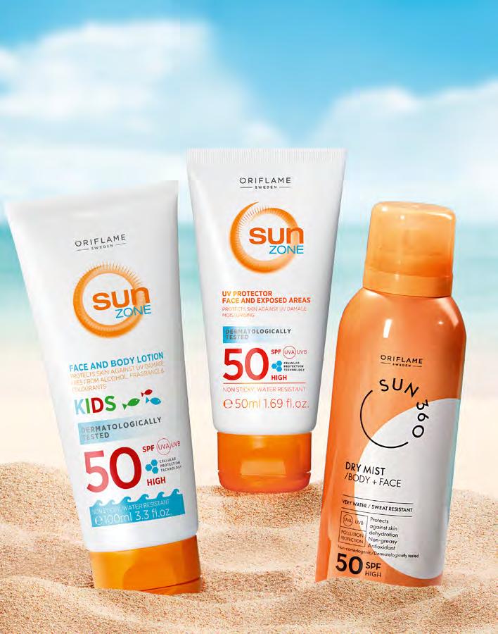 Слънцезащитен лосион за лице & тяло за деца SPF 50 100 ml. 30568 32.99 лв. 20.99 лв. Най-ниската цена за периода от 30 дни преди тази оферта е била 20.99 лв. Слънцезащитен лосион за лице SPF 50 50 мл 23378 27.99 лв. 14.99 лв. Най-ниската цена за периода от 30 дни преди тази оферта е била 14.99 лв. Слънцезащитен сух спрей за лице и тяло Sun 360 SPF 50 150 мл 34891 47.00 лв. 29.99 лв. Най-ниската цена за периода от 30 дни преди тази оферта е била 29.99 лв. Висока и водоустойчива защита за ДЕТСКАТА КОЖА РАДВАЙТЕ СЕ БЕЗГРИЖНО НА СЛЪНЦЕТО ХИДРАТИРА И ПРЕДПАЗВА чувствителната към слънцето кожа от вредните UVA и UVB лъчи Удобен многофункционален СПРЕЙ с лека, суха текстура МОИТЕ ЛЕТНИ ПРИЯТЕЛИ 153