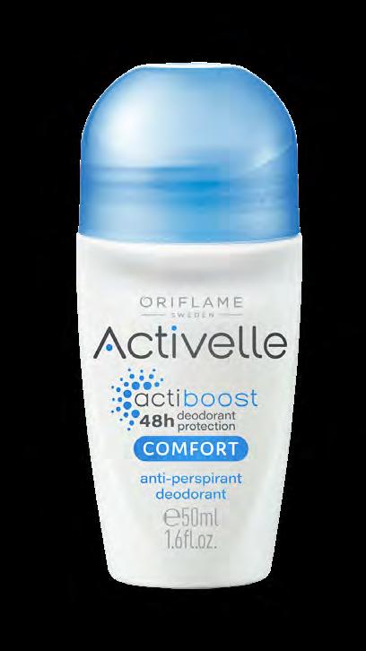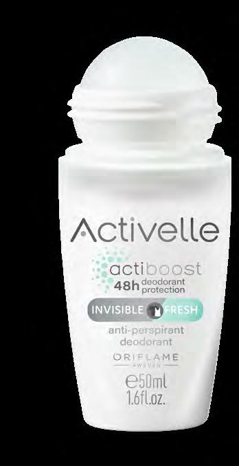 115 Останете активни, останете свежи! КОНТРОЛДО48чНАДНЕПРИЯТНИТЕМИРИЗМИ† †Клинично доказано КУПЕТЕ 1 ЗА 4.99 ЛВ. КУПЕТЕ 2 ЗА 3.49 ЛВ. ВСЕКИ Рон-он InvisibleизпотяванепротивActivelleFresh 50 мл 41303 7.00 лв. Рол-он ComfortизпотяванепротивActivelle 50 мл 33139 7.00 лв. Свежароматфлораленсноткицитрус.петна.свежест,Дълготрайнабезбели