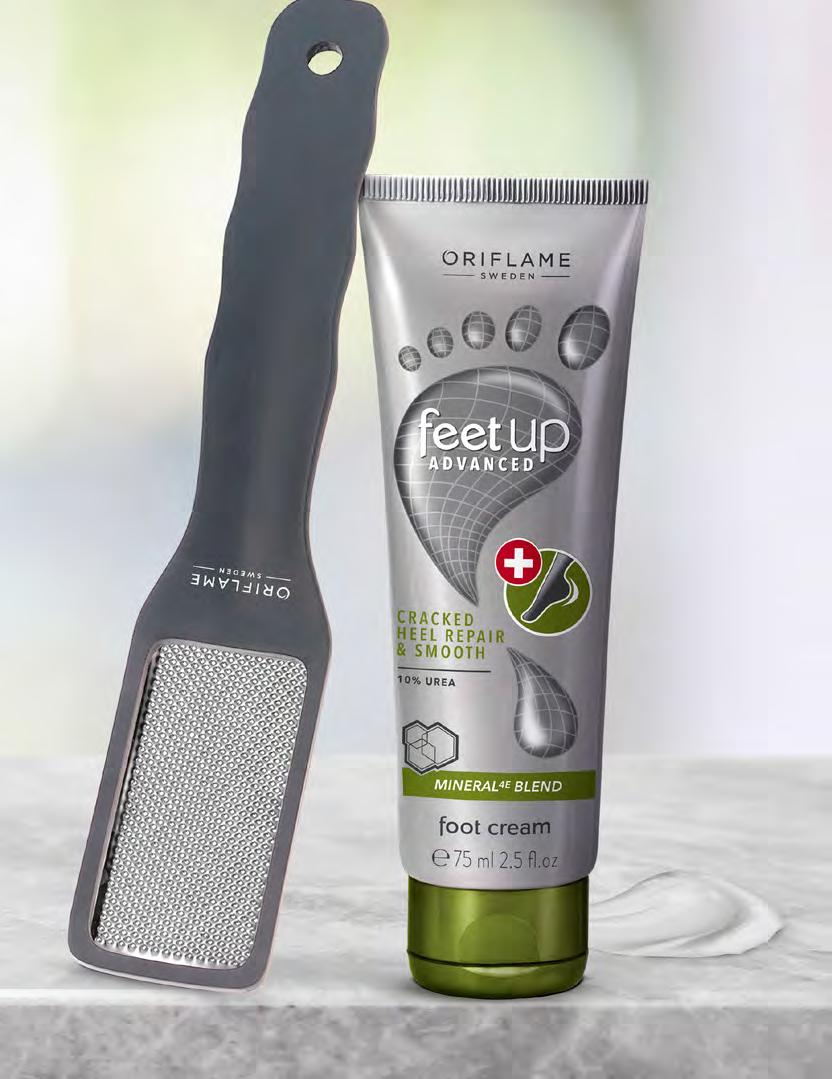 23 Възстановяващ & омекотяващ крем за напукани пети Feet Up 75 мл 33027 13.00 лв. 5.99 лв. Нанасяйте два пъти дневно - сутрин и вечер, след като си вземете вана или душ. Нанасяйте с масажни движения, като се концентрирате върху петите и областите със суха кожа. СЛЕД 7 ПРЕДИДНИ** † Клинични тестове. Пила за стъпала от неръждаема стомана Размери: 19 x 3,8 см. Материал: неръждаема стомана, 50% рециклирана пластмаса 40778 3.99 лв.9.00 лв. РЕЦИКЛИРАНАПЛАСТМАСА иразкриетеиотстранитестомана,неръждаемапилатаИзползвайтеотзадасухатагрубакожаидамекигладкистъпала. * Тествано от 10 човека с напукани пети ОМЕКОТЯВАЩА ФОРМУЛА С КАКАОВО МАСЛО, ВИТАМИН B5 И УРЕЯ, КОИТО ВЪЗСТАНОВЯВАТ НАПУКАНИТЕ ПЕТИ САМО СЛЕД 7 ДНИ* ОРИФЛЕЙМГОДИНИ