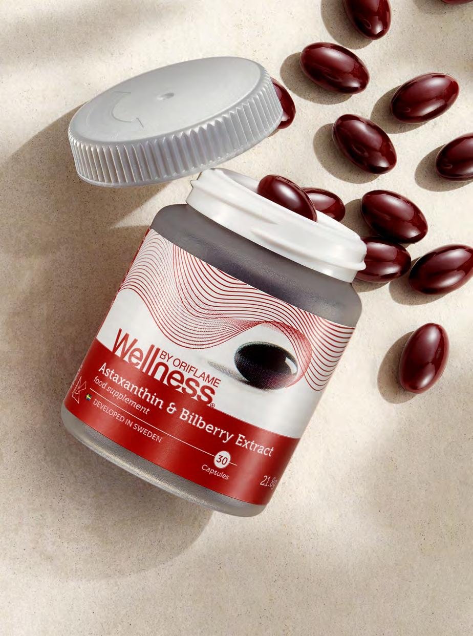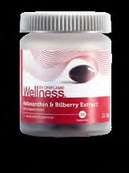 72 TOMORROWTOGETHERWELLNESSTOWARDS Приемайте 1-2 капсули на ден с храна за здравословен прилив на естествени антиоксиданти Бъдете по-силни! По-суровите метеорологични условия, идващи с новия сезон, изискват укрепване на защитните ни сили! Нашият екстракт от астаксантин и боровинка, ежедневна хранителна добавка, съдържа антиоксиданти, които се борят с негативните ефекти на оксидантния стрес, като защитават клетките на тялото отвътре навън. Витамин C & E предпазват кожата от оксидантния стрес Екстрактът от боровинки е един от най-богатите източници на антоцианини, вид флавоноиди със силен антиоксидантен ефект. Сладководните микроводорасли H. Pluvialis, естествен източник на астаксантин, помагат да се осигури защита от свободните радикали и оксидантния стрес. Комбинация от мощни антиоксиданти, включваща астаксантин, екстракт от боровинка и витамини С и Е.