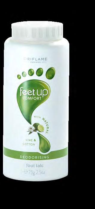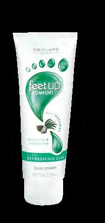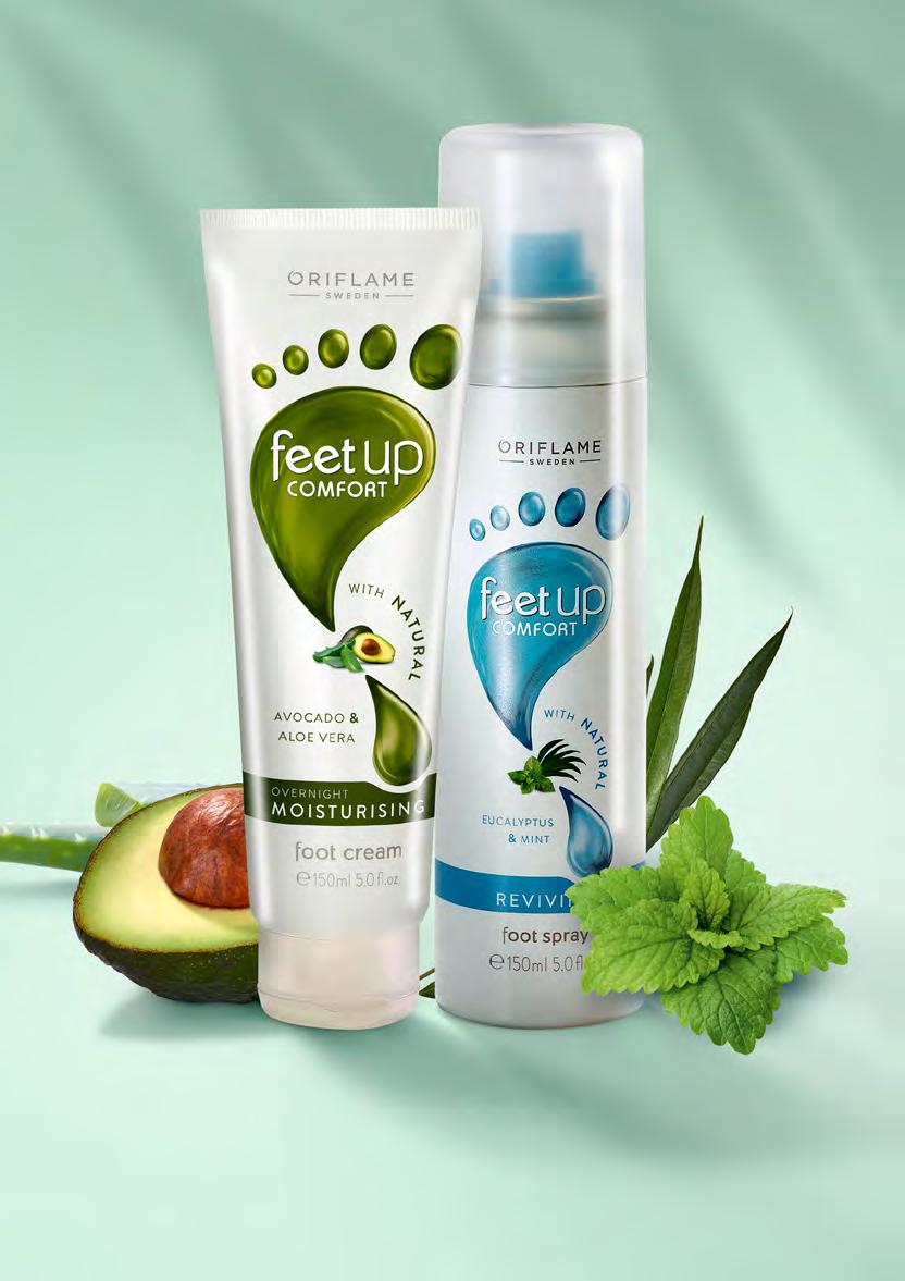 105 КУПЕТЕ 1 ЗА 7.99 ЛВ. КУПЕТЕ 2 само за 6.49 лв. Освежаващ спрей за крака Feet Up Comfort 150 мл 32372 16.00 лв. Хидратиращ крем за крака с нощно действие Feet Up Comfort 150 мл 34935 Разкрийте13.00 лв. подхраненапрелестна,кожа Ароматизирайтеиуспокойте 150 ml Мигновено освежава и ароматизирастъпалата ЗВЕЗДНА СЪСТАВКА С мента.охлаждащомаслоароматизиращоотевкалиптимаслоот Супер нощенхидратиращинтензивнобогат,кремСомекотяващомаслоотавокадо и хидратиращ сок от алое вера. ЗВЕЗДНА СЪСТАВКА