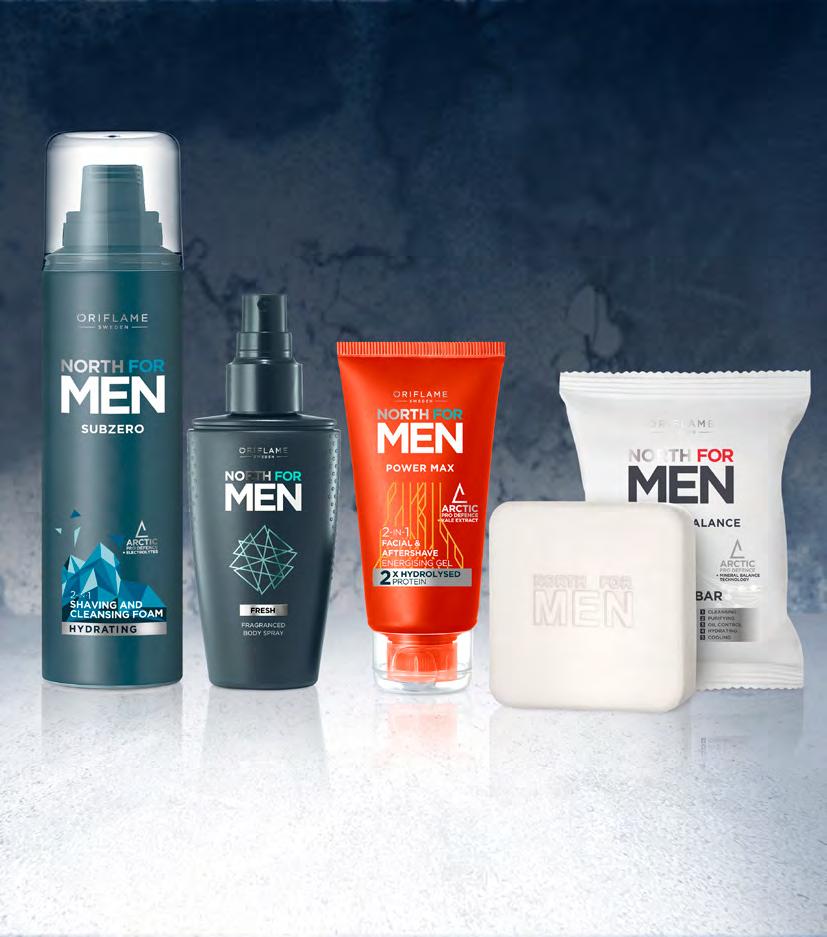 96 Ароматен спрей за тяло North For Men Fresh 100 мл 38912 9.99 лв.20.00 лв. Пяна почистванеза и бръснене North For Men Subzero 2-в-1 200 мл 35870 8.99 лв.12.00 лв. Гел за лице и афтършейв North for Men PowerMax 2-в-1 50 мл 38613 5.99 лв.10.00 лв. Сапун North for Men Ultimate Balance 100 г 43929 3.99 лв.6.00 лв. 35878 Шампоан за коса и тяло North For Men Subzero 250 мл 13.00 лв. 35877 Хидратиращ гел North For Men Subzero 2-в-1 50 мл 10.00 лв. ЧУВСТВАЙТЕ СЕ ЧУДЕСНО В СОБСТВЕНАТА СИ КОЖА Обогатена с свежакожатаелектролити,възстановяващикоитопомагатнадасечувствагладка,ихидратирана. 2-в-1 пяна за почистване и бръснене С хидролизиран протеин, екстракт от кейл и технология Arctic Pro хидратацияосигуряващаDefense,24-часоваиохлаждащ ефект. Гел за лице & афтършейв