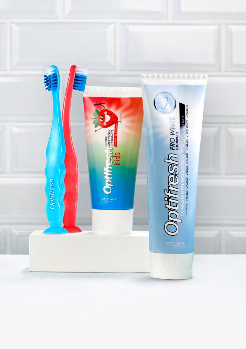 106 Детска паста за зъби с вкус на ягода Optifresh 50 мл 44954 3.49 лв.7.00 лв. Детска четка за зъби с мек косъм Optifresh Kids42453розова 2.99 лв.7.00 лв. Детска четка за зъби с мек косъм Optifresh Kids2.99 лв.40877синя7.00 лв. Избелваща паста за зъби Optifresh Pro White 100 мл 38874 4.49 лв.8.00 лв. Продължавайте да се усмихвате, момчета и момичета! Четка за зъби с мек венци.идетскитеидеалнакосъм,зазъбкиделикатни Формулирана с по-ниско ниво на флуор, адаптираназадеца на възраст 2-6. Помага възстановяванеза на белотаестественатаназъбите.