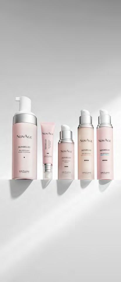 42 КАКВО КАЗВА НАУКАТА Менопаузата води до рязко намаляване на нивата на естроген, хормон, жизненоважен за синтеза на колаген. В резултат на това кожата губи плътност, контурите на лицето се отпускат, а бръчките стават все по-дълбоки. Увеличаването на възрастта води и до намаляване на броя на клетките, произвеждащи меланин, като принуждава съществуващите да работят още поусилено. Това е причина меланинът да се натрупва под формата на плътни петна, видими като старчески петна. Комплектът NovAge Time Restore, предназначен да противодейства на ефектите от хормоналното изчерпване, прави кожата по-плътна и по-устойчива, с предефинирани контури на лицето и по-слабо изразени дълбоки бръчки и старчески петна. NOVAGE СТЪПКИ ЗА ГРИЖА Какво хормонитеизчерпванетопредставлявана Прочетете повече за тази стъпка на стр. 48-49. ПОЧИСТВАНЕ ЕФЕКТИВНОСТПОВЕЧЕ ХИДРАТАЦИЯПР ИЦЕЛВАНЕ