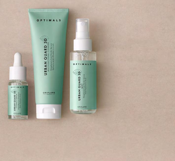 38 UrbanпочистващМултифункционаленгелOptimalsGuard3D 125 мл 44253 8.99 лв.17.00 лв. серумКонцентриранзаизпълване на кожата Optimals 15 мл 44387 10.99 лв.22.00 лв. Дневен крем Optimals Urban Guard 3D SPF 25 50 мл 44259 12.99 лв.22.00 лв. Спрей Optimals Urban Guard 3D 100 мл 44257 10.99 лв.21.00 лв. Серум Optimals Urban Guard 3D 30 мл 44254 2 13.99 лв.5.00 лв. За стресираната в града кожа ПОЛИФЕНОЛИ – от смърч,скандинавскиизвестенснеговитеантиоксидантнисвойства POLLUPROTECTTECHNOLOGY Осигурява предпазващестественслойзапо-силназащитанакожатаотзамърсяванията. КРЕМДНЕВНИЯТSPF25 предпазва кожата уврежданеотихидратира благодарение киселинахиалуронованасвисокомолекулнотеглоиестественпчеленвосък. ПОСРЕЩНЕТЕ УВЕРЕНО ПРЕДИЗВИКАТЕЛСТВАТА НА ГРАДА! ДАРЕТЕ ПОДМЛАДЯВАЩАСИКОЖАТАСГРИЖА!СЕРУМЪТ помага за хидратиране и засилване на защитата на кожата МУЛТИФУНКЦИОНАЛНИЯТкиселина.хиалуронованискомолекулнас гел почиства порите в дълбочина и ревитализира кожата с нектар от боровинки. Спреят освежава и дарява с дълбока хидратация с полифеноли от скандинавски смърч. URBAN3RESCUER Мощен комплекс от 3 части помага за укрепване и баланс на кожата, като същевременно подсилва хидратацията с киселина.хиалуронова 1. С месете 1 до 2 капки с вашия крем или 2.серум.Нанесете, като избягвате директен контакт с очите. 3. За най-добри резултати използвайте ежедневно в продължение на поне 7 дни. НАНАСЯЙТЕ ДИРЕКТНО ВЪРХУ КОЖАТА ИЛИ ЗАЕДНО С ОБИЧАЙНИЯ КРЕМ ИЛИ СЕРУМ ЗА ЛИЦЕ: 3в-1 всичкипродуктпочистващ–зануждинакожата