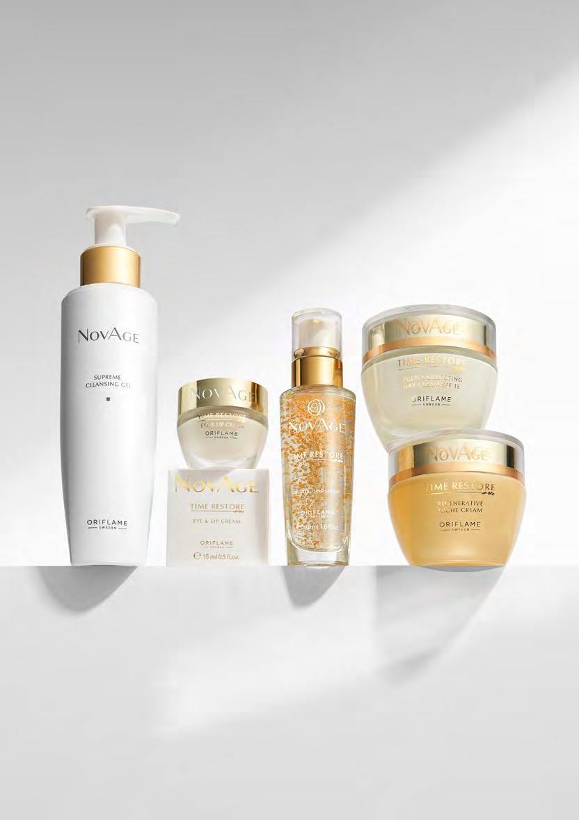 43 Комплект NovAge Time Restore Комплект от 5 продукта със стандартни размери. 31774 169.99 лв.241.00 лв. 33984 Почистващ гел NovAge Supreme 150 мл 39.00 лв. 28.99 лв. 32629 Възстановяващ крем за зоните около очите и устата NovAge Time Restore 15 мл 33.00 лв. 32630 Ревитализиращ серум NovAge Time Restore 30 мл 60.00 лв. 32627 Коригиращ дневен крем NovAge Time Restore SPF 15 50 мл 51.00 лв. 32628 Възстановяващ нощен крем NovAge Time Restore 50 мл 51.00 лв. 37.99 лв. ∆2КлиничнитестовенахидратиращотодействиеприупотребатанакомплектаNovAgeTimeRestore. КЛИНИЧНО ПОДОБРЯВАДОКАЗАНОВИДАНАЗРЯЛАТАКОЖА∆2 Подходящи за 50+ НЕДОСТАТЪЦИ НА КОЖАТА: Дълбоки бръчки, загуба на плътност и еластичност