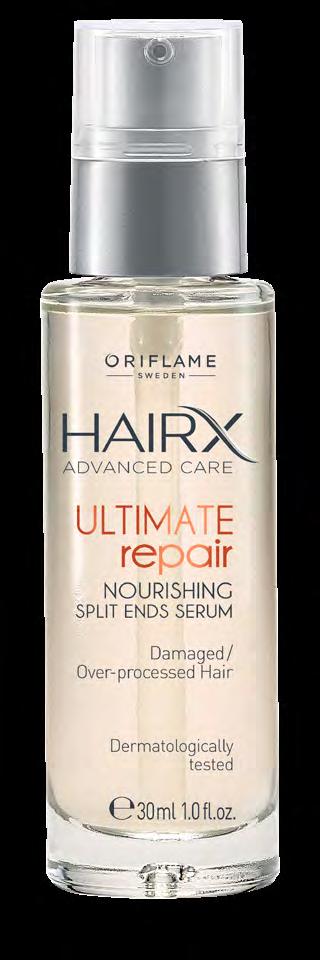41979 41980 42890 42892 45443 35926 42877 104 • Помага за изглаждане, омекотяване и подхранване на косата • Помага за по-лесно оформяне на прическите при увредена коса • П омага за видимо намаляване на накъсаните краища • Дерматологично тестван ПОДХРАНВАЩ СЕРУМ СРЕЩУ НАКЪСВАНЕ НА КРАИЩАТА Върховна грижа за увредена коса Подхранващ серум срещу накъсани краища HairX Advanced Ultimate Repair 30 мл 42889 17.00 лв. 7.99 лв.