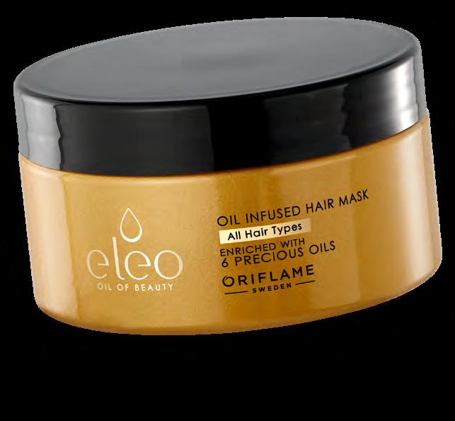 121 Маска за коса с олио Eleo 200 мл 38599 25.00 лв. 15.99 лв. Масажирайте на влажна коса, оставете да подейства 5 минути и отмийте. НАЧИН НА УПОТРЕБА: **Клинични тестове – при използване на шампоан и балсам/маска *Потребителска оценка Придава на косата дълготраен и интензивен блясък* Предпазва от накъсване и цъфтеж** Интензивно подхранва косата и възвръща нейната еластичност* МАСКА ЗА КОСА ВЪЗВЪРНЕТЕ ХИДРАТАЦИЯТА НА КОСАТА СИ! НОВО!