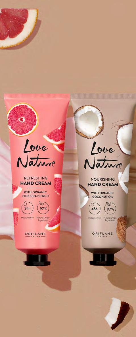 41260 41335 44280 109 Подхранващ крем за ръце с органичен екстракт от кокосово масло Love Nature 75 мл 41338 8.00 лв. 3.99 лв. Освежаващ крем за ръце с органичен розов грейпфрут Love Nature 75 мл 41341 8.00 лв. 3.99 лв. Сапун с органични екстракти от кокосова вода & пъпеш Love Nature 75 г 41489 5.00 лв. 2.79 лв. Енергизиращ ексфолииращ сапун с органични мента & малина Love Nature 75 г 41277 5.00 лв. 2.79 лв. Чиста и подхранена кожа Създадени с даровете на природата Богата и кремообразна формула, която оставя защитен слой върху кожата. Лека, хидратираща формула, която попива бързо и поддържа кожната бариера.