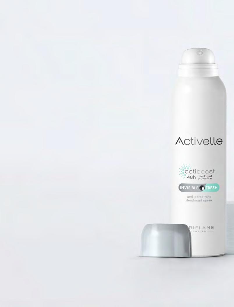 124 Започнете всеки ден уверено с Activelle! Иновативната технология ActiBoostTM се активира при движение и ви дава свежест точно тогава, когато най-много се нуждаете от нея - за да можете да се фокусирате върху важните неща! ПОГРИЖЕТЕ СЕ ЗА СЕБЕ СИ ПРЕЗ 2023 г.! Поставяйте си по-малки цели, които да бъдат стъпките за постигането на големите ви мечти - забравете страха и действайте - ден след ден! †Клинично доказано **потребителски тест Без бели петна** ДО 48 ч † Спрей дезодорант против изпотяване Activelle Invisible Fresh 150 мл 41311 12.00 лв. 6.99 лв. Време е да бъдете смели!