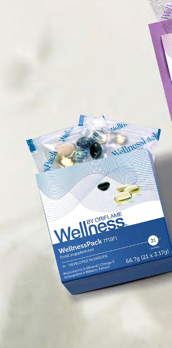 72 НОВА ГОДИНА, НОВИ ВЪЗМОЖНОСТИ *Купете в 2 последователни каталога и вземете като ПОДАРЪК в 3-тия. Попитайте вашия Орифлейм партньор за абонаментна програма Wellness. Цел: Да действам с всички сили! Животът е изпълнен с ангажименти, дните минават бързо и си даваме сметка, че нямаме достатъчно време през деня, за да направим всичко, което трябва. Комбинираният комплект за мъже/жени ви помага да осигурите на организма си препоръчителната дневна доза основни витамини, минерали, мастни киселини и антиоксиданти – идеален начин да повишите нивата си на енергия! Комбиниран комплект за мъже 21 пакетчета. 66.7 g (21 x 3.17 g). 29697 62.90 лв. Всеки 3-ти Комбиниран комплект Wellness ПОДАРЪК!*