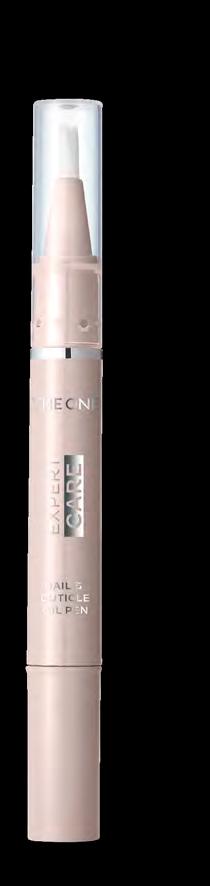 • О богатен с калций за да подобри здравината на ноктите само за 7 дни.* • Създава защитен слой, който предпазва ноктите от чупене и цепене.* • Засилва естествения блясък на ноктите.* Изглаждаща основа • Изглажда повърхността на ноктите и ги подготвя за нанасянето на лака. • П омага за дълготрайния ефект на лака. Писалка с олио • Подхранва, благодарение на съдържанието на бадемово масло. • Успокоява, благодарение на съдържанието на алое вера и сквален. • Само отвъртете и нанесете върху ноктите и кожичките! Топ