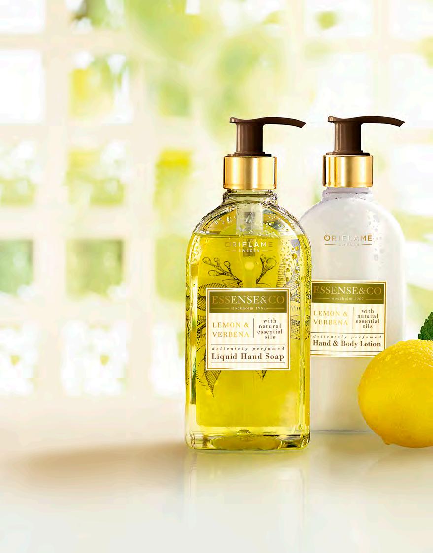 122 Лосион за ръце & тяло с лимон и върбинка Essense&Co. 300 мл 31851 21.00 лв. 11.99 лв. Течен сапун за ръце с лимон и върбинка Essense&Co. 300 мл 31850 17.00 лв. 9.99 лв. ОБОДРЯВАЩА КОМБИНАЦИЯ ОТ ЛИМОН И ВЪРБИНКА ПОДХРАНЕТЕ КОЖАТА СИ С НАТУРАЛНИ МАСЛА! Лимон Богат на Витамин С и познат със своите антибактериални и антиоксидантни свойства. Лимоновото масло има хидратиращ ефект върху кожата. В ароматерапията то се ползва за подобряване на настроението и намаляване на стреса. Върбинка Познат със своите успокояващи свойства, екстрактът от листа на върбинка има детоксикиращо действие, което помага на кожата да изглежда свежа и сияйна. РИТУАЛИ ЗА РЕЛАКСАЦИЯ У ДОМА ЗВЕЗДНИ СЪСТАВКИ