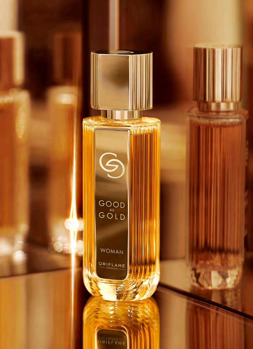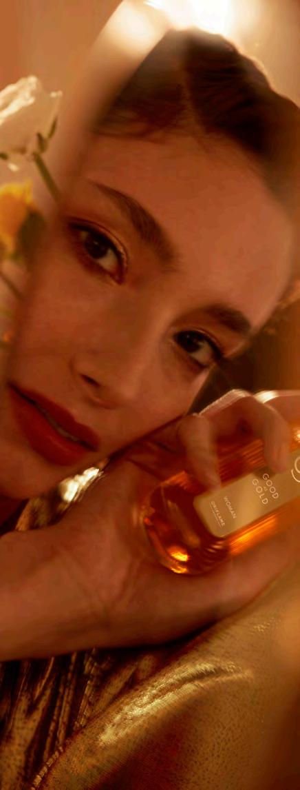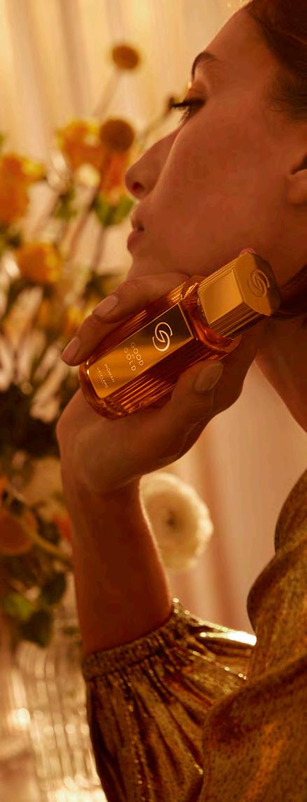 4 СКЪПОЦЕННО ЗЛАТНО УСЕЩАНЕ Придайте на красотата си златист блясък, докато аурата ви завладява всичко около вас с новата, дръзка парфюмна вода Giordani Gold. Ухание, което превръща в злато всичко, до което се докосне. Ще усетите как ще заблестите по-ярко и от златото с този изключителен аромат! ЕКСКЛУЗИВЕН БЛЯСКАВ АРОМАТ Портокаловият цвят среща златисточервения шафран. Най-ценната подправка в света, шафранът, струи от аромата като течно злато и извисява авторските ухания GG до нови върхове.