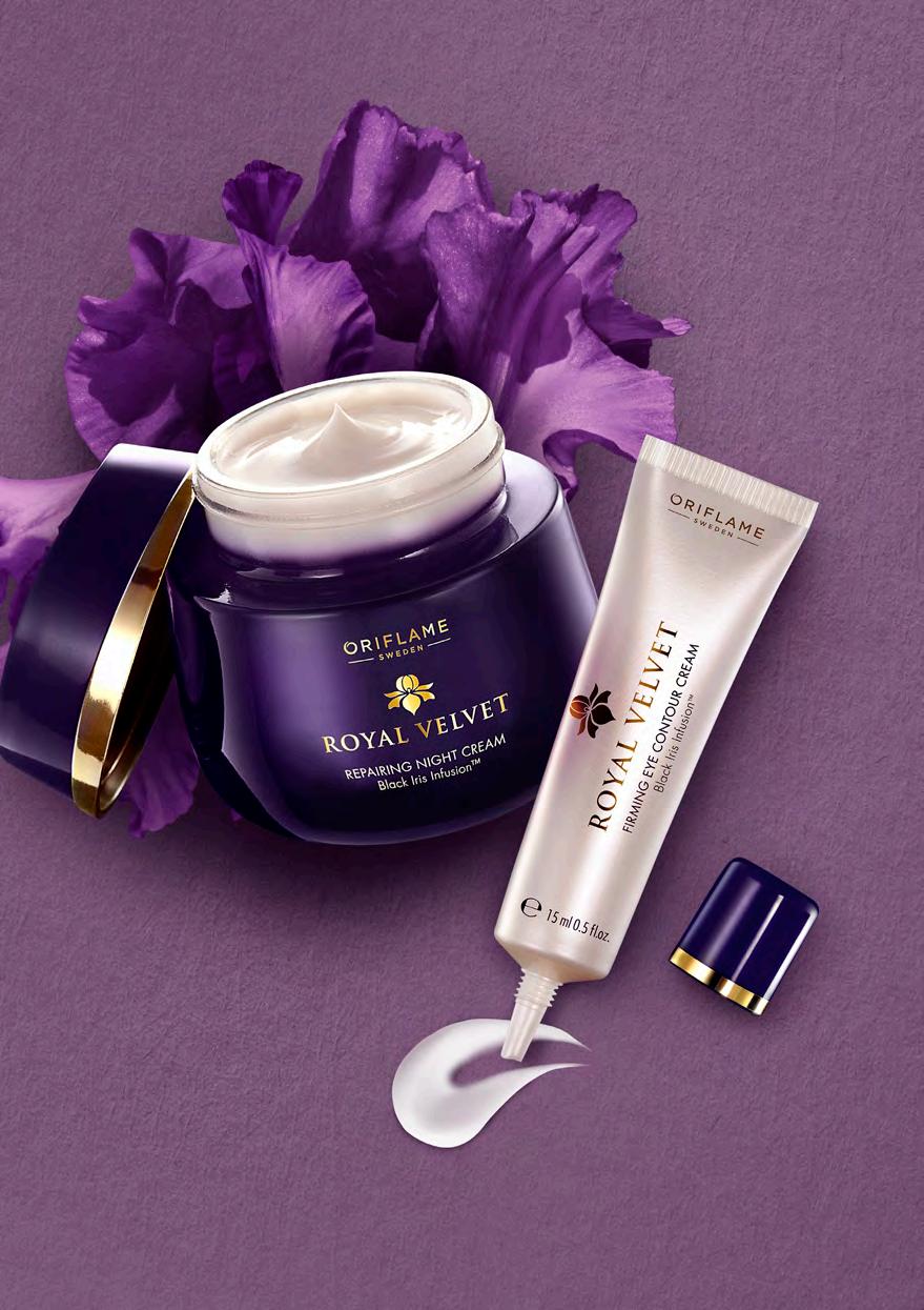 133 Възстановяващ нощен крем „Кралска кадифена колекция“ 50 мл 22814 31.00 лв. Стягащ крем за околоочния контур „Кралска кадифена колекция“ 15 мл 22815 20.00 лв. За всеки тип кожа 40+ • ОФОРМЯ ЛИЦЕВИТЕ КОНТУРИ - 69% СА СЪГЛАСНИ* • СТЯГА КОЖАТА, КАТО СЛЕД ЛИФТИНГ - 70% СА СЪГЛАСНИ* • ВИДИМО НАМАЛЯВА ПОЯВАТА НА ФИНИ ЛИНИИ И БРЪЧКИ - 74% СА СЪГЛАСНИ* *Потребителска ефективност от 91 жени над 40 г. • възвръща еластичността на кожата около очите • намалява тъмните кръгове и подпухналостта • прави бръчките понезабележими