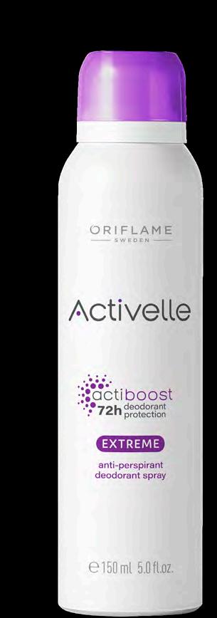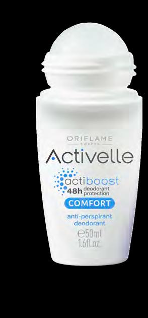 113 Рон-он против изпотяване Activelle Invisible Fresh 50 мл 41303 7.00 лв. 3.99 лв. Спрей дезодорант против изпотяване Activelle Extreme 150 мл 33147 12.00 лв. 6.99 лв. Рол-он против изпотяване Activelle Comfort 50 мл 33139 7.00 лв. 3.99 лв. УВЕРЕНО СВЕЖИ, УВЕРЕНО ЗАЩИТЕНИ † Клинично доказано. *клинични тестове **потребителски тест ДО 48ч КОНТРОЛ НАД НЕПРИЯТНИТЕ МИРИЗМИ† ДЕЗОДОРИРАЩ ЕФЕКТ ДО 72ч Осигурява дълготрайна свежест** Без бели петна** Обогатен с хидратиращи и грижовни към кожата съставки за максимален комфорт Максимална защита дори след физическа активност*