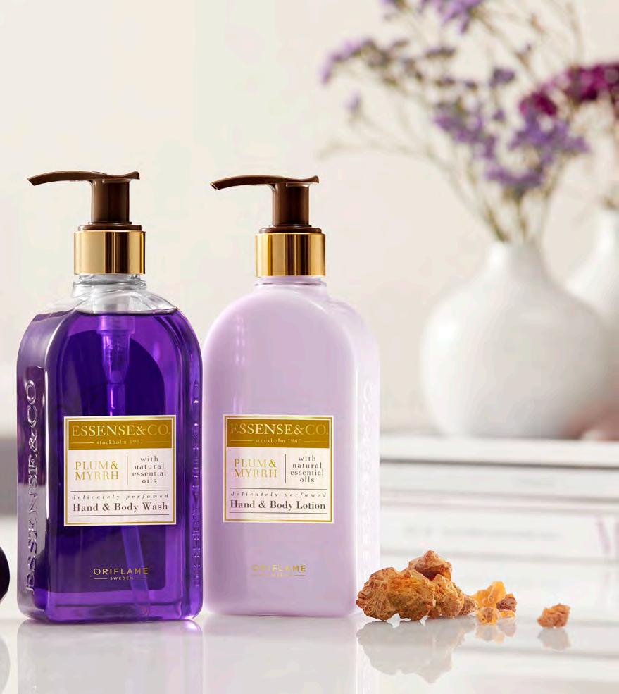 123 ОТПУСНЕТЕ СЕ! Лосион за ръце & тяло със синя слива и смирна Essense&Co. 300 мл 41432 20.00 лв. 12.99 лв. Измиващ гел за ръце и тяло със синя слива & смирна Essense&Co. 300 мл 41420 16.00 лв. 10.99 лв. ЧУВСТВЕН АРОМАТ НА СИНЯ СЛИВА И СМИРНА Синя слива Този сочен плод е богат на съставки с противовъзпалително действие, които защитават кожата от свободните радикали и оксидативния стрес Смирна Извлечено от смолата на растението смирна, етеричното масло от смирна има топъл аромат и е познато със своето противомикробно и ревитализиращо действие. РИТУАЛИ ЗА РЕЛАКСАЦИЯ У ДОМА НОВО! ЗВЕЗДНИ СЪСТАВКИ