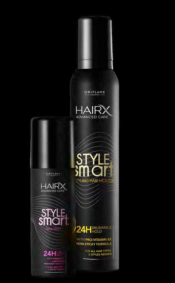 105 Стилизиращ спрей за блясък HairX Advanced Care 100 мл 34939 17.00 лв. 7.99 лв. Стилизираща пяна за коса HairX Advanced Care 200 мл 34938 17.00 лв. 7.99 лв. 3D четка за къдрици Styler Размери: 22 x 10 см. Материали: PP, ABS 30647 13.00 лв. 7.49 лв. Голяма кръгла четка Styler Размери: 22 x 8,8 см. Материали: ABS, найлон 30609 13.00 лв. 7.99 лв. Мека четка за коса Styler Размери: 24 х 6 см. Материали: ABS, гума и найлон 30579 11.00 лв. 6.49 лв. Малка кръгла четка Styler Размери: 22 x 4,5 см. Материали: ABS, найлон 30595 11.00 лв. 6.49 лв. Изберете вашите аксесоари Вашата коса, вашият стил * Потребителска оценка от 80 жени †Клинично тестван. Запазване на къдриците над 95% след 48 часа, при клинични тестове с 50% средна влажност и температура 25°C† СПРЕЙ ЗА БЛЯСЪК Прави косата мека и лъскава и осигурява 24-часов блестящ завършек* СТИЛИЗИРАЩА ПЯНА ЗА КОСА Осигурява силна и трайна фиксация за 24 часа, дори след сресване*† Леката формула осигурява върховна мекота при стилизиране.*