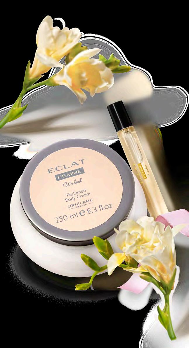 ЛИМИТИРАНА КОЛЕКЦИЯ 122 Ароматен крем за тяло Eclat Femme Weekend 250 мл 42885 19.00 лв. 10.99 лв. Тоалетна вода Eclat Femme Weekend - супер мини спрей 8 мл 43951 18.00 лв. 10.99 лв. БОГАТ, ХИДРАТИРАЩ КРЕМ ЗА ТЯЛО Нанасяйте преди парфюма, за да удължите живота на аромата! ВЗЕМЕТЕ КРЕМ ЗА ТЯЛО ИЛИ МИНИСПРЕЙ САМО ЗА 4.49 лв. ПРИ ПОКУПКА НА ТОАЛЕТНАТА ВОДА ECLAT FEMME WEEKEND Елегантна нежност