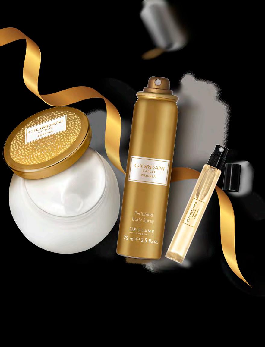 + + 119 калабрийски бергамот, луксозни акорди портокалов цвят, дървесни нотки от Тоскана Ароматен крем за тяло Giordani Gold Essenza 250 мл 42206 19.00 10.99 Ароматен спрей за тяло GG ESSENZA 75 мл 42806 14.00 лв. 9.99 лв. Парфюм Giordani Gold Essenza - супермини спрей 8 мл 42786 18.00 лв. 10.99 лв. НЕЖНИ ФЛОРАЛНИ НОТКИ КОМПЛЕКТ ОТ 3 КРЕМ ЗА ТЯЛО + АРОМАТЕН СПРЕЙ ЗА ТЯЛО + МИНИСПРЕЙ САМО ЗА 27.99 лв. КОД НА КОМПЛЕКТА: 144992 Усещане за лукс ИДЕИ ЗА ПОДАРЪЦИ ОЩЕ В ПЪРВИТЕ МИНУТИ