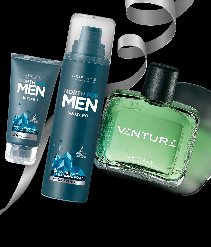 + + 117 кедрово дърво , корен от дамяна , мента Хидратиращ гел North For Men Subzero 2-в-1 50 мл 35877 10.00 лв. 5.99 лв. Пяна за почистване и бръснене North For Men Subzero 2-в-1 200 мл 35870 12.00 лв. 8.99 лв. Овлажняващ гел, който се абсорбира на мига и осигурява 24 ч хидратация†. †Клинични тестове ИДЕИ ЗА ПОДАРЪЦИ ОЩЕ В ПЪРВИТЕ МИНУТИ 2-в-1 пяна за почистване и бръснене Тоалетна вода Venture 100 мл 42510 35.00 лв. 18.99 лв. КОМПЛЕКТ ОТ 3 ХИДРАТИРАЩ ГЕЛ + ПЯНА ЗА ПОЧИСТВАНЕ И БРЪСНЕНЕ + ТОАЛЕТНА ВОДА САМО ЗА 29.99 лв. КОД НА КОМПЛЕКТА: 144990 АРОМАТНИ НОТКИ