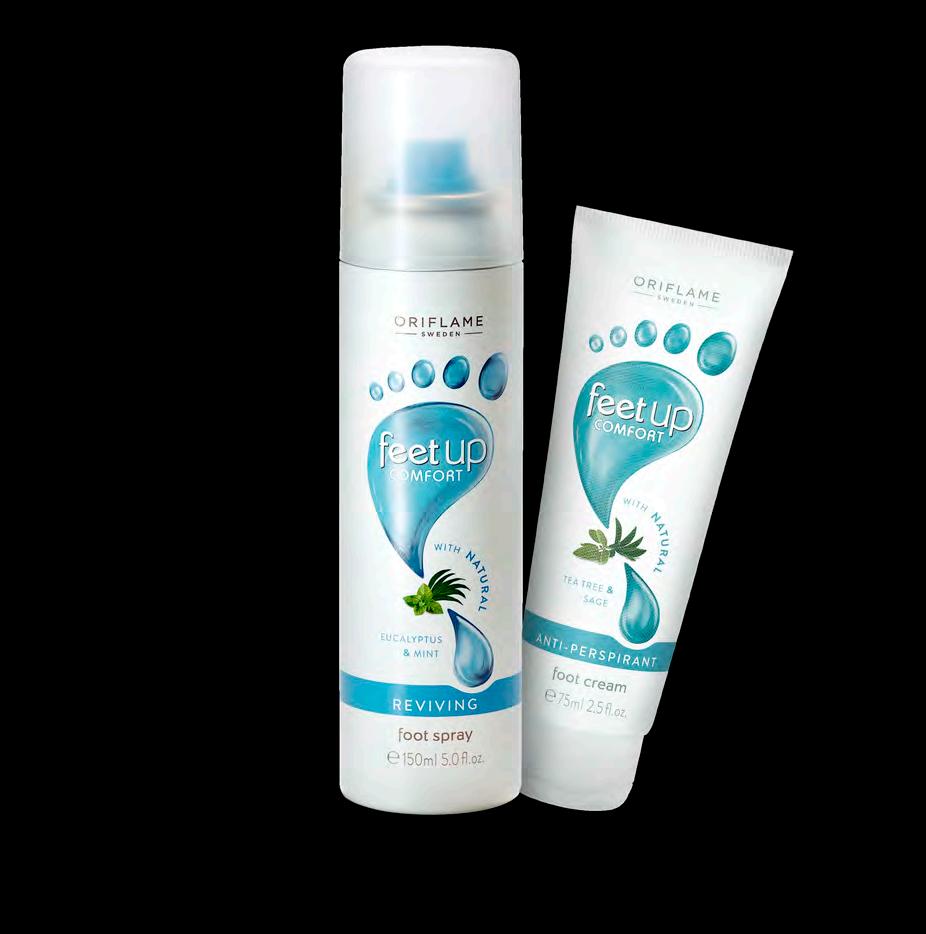 102 Освежаващ спрей за крака Feet Up Comfort 150 мл 32372 17.00 лв. 7.99 лв. Крем за крака против изпотяване Feet Up Comfort 75 мл 32368 9.00 лв. 6.49 лв. Пила за стъпала Comfort Размери: Д183 x Ш44 x 11В мм. Материали: гласпапир, 50% рециклирано GPPS. 37559 8.00 лв. 4.99 лв. ДЕЗОДОРИРАЩИЯТ КРЕМ поддържа стъпалата сухи и свежи Незабавно охлажда уморените стъпала и има дезодориращ ефект СПРЕЙ ЗА КРАКА И ОБУВКИ Внимателно отстранява сухата, груба кожа ПИЛА ЗА СТЪПАЛА Гладки, ревитализирани и освежени стъпала