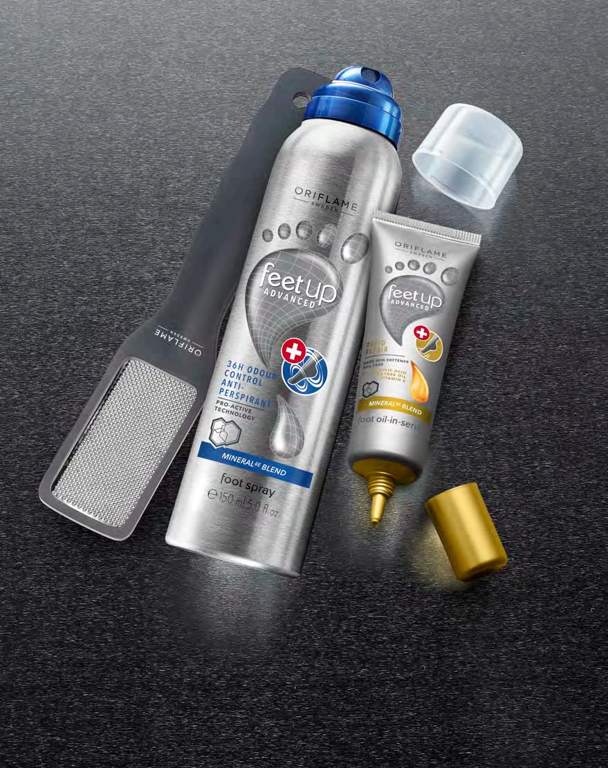 101 Спрей за крака против изпотяване Feet Up Advanced 150 мл 33034 18.00 лв. 8.49 лв. Възстановяващ серум за крака Feet Up Advanced 30 мл 35835 14.00 лв. 6.49 лв. Пила за стъпала от неръждаема стомана Размери: 19 x 3,8 см. Материал: неръждаема стомана, 50% рециклирана пластмаса 40778 10.00 лв. 5.49 лв. ∆ Клинични тестове. Интензивно хидратира. Създава усещане за по-мека кожа още след първата употреба* ПИЛА ЗА СТЪПАЛА ОТ НЕРЪЖДАЕМА СТОМАНА Погрижете се за комфорта и добрия външен вид на стъпалата * Потребителски тестове с 67 участника със загрубяла кожа на краката. Помага за лесното отстраняване на сухата и загрубяла кожа, за да се радвате на меки и гладки стъпала. СЕРУМ, ОБОГАТЕН С МАСЛА 36-часова защита от неприятни миризми ∆ ДЕО СПРЕЙ ЗА КРАКА И ОБУВКИ