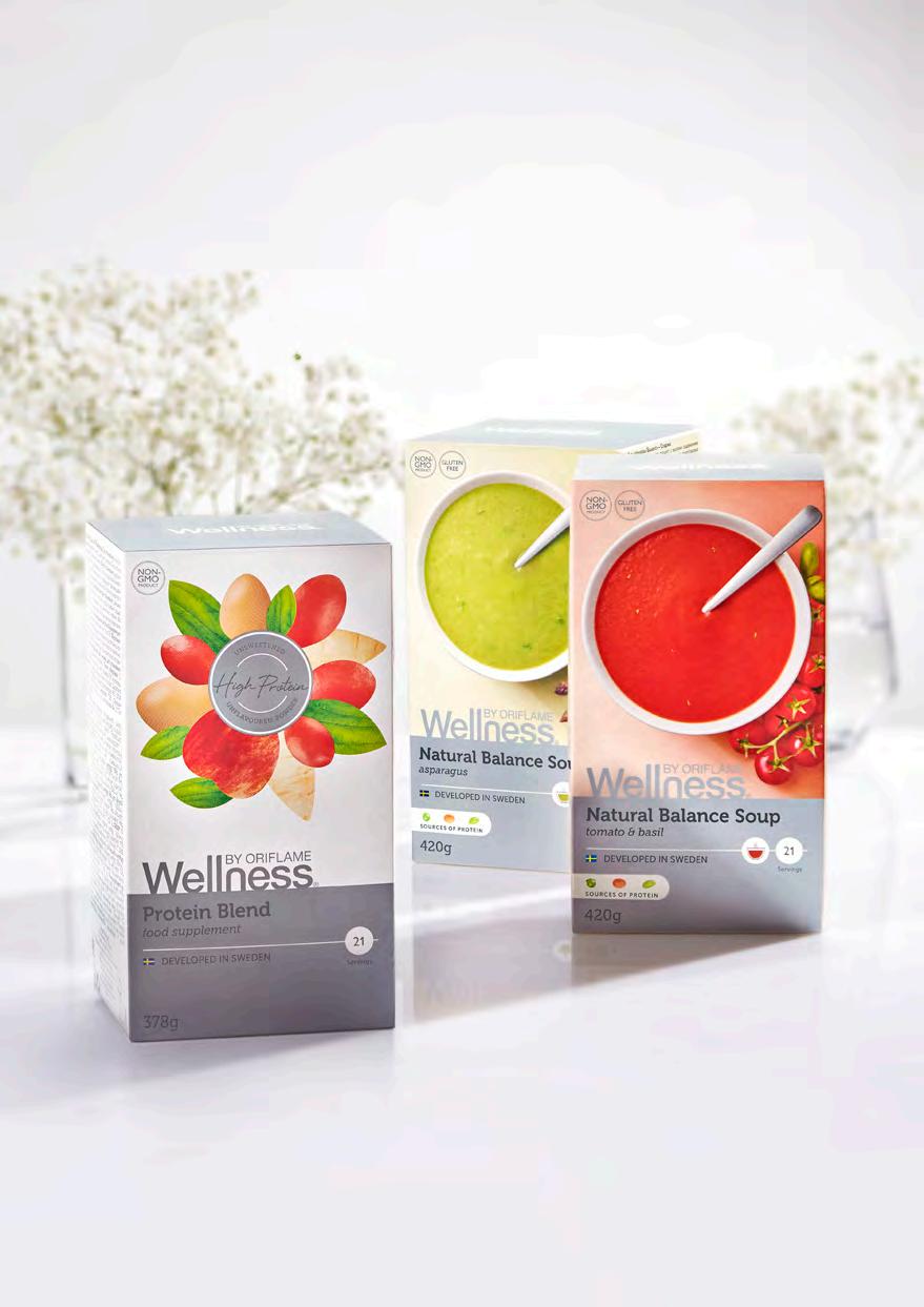 56 *Купете в 3 последователни каталога и вземете като ПОДАРЪК в 4-тия. *Купете в 2 последователни каталога и вземете като ПОДАРЪК в 3-тия. Всеки 4-ти продукт по-долу ПОДАРЪК!* Всеки 3-ти продукт по-долу ПОДАРЪК!* TOGETHER TOWARDS TOMORROW Защо ще обикнете нашите супи „Естествен баланс“? Нима в тях има нещо, което да не ви хареса? Всички те са: • Вкусни и 100% натурални Нашите супи не съдържат изкуствени оцветители, овкусяващи агенти, консерванти, ГМО и глутен. Можете да избирате различни вкусове, съгласно вашите предпочитания и да разнообразявате диетата си. • Питателни и с ниско съдържание на калории Източниците на протеин осигуряват оптимално хранене и ситост и помагат за поддържането на мускулна маса. • Лесни за приготвяне Приготвянето на едно пълноценно хранене ще ви отнеме секунди: просто смесете 1 мерителна лъжичка от супата на прах със 150-200 мл вряла вода и разбъркайте до получаването на хомогенна смес. Разумно хапване и прием на добавки 29705 Oмега 3 60 капсули. 41.6 g. 38.90 лв. 29688 Астаксантин & екстракт от боровинки Количество, достатъчно за един месец. 42.90 лв. 28241 Мултивитамини и минерали за деца WellnessKids 21 таблетки x 1.1 г 23.90 лв. 22467 Омега 3 за деца WellnessKids За деца над 3-годишна възраст. 105 мл 29.90 лв. Попитайте вашия Орифлейм партньор за абонаментна програма Wellness.