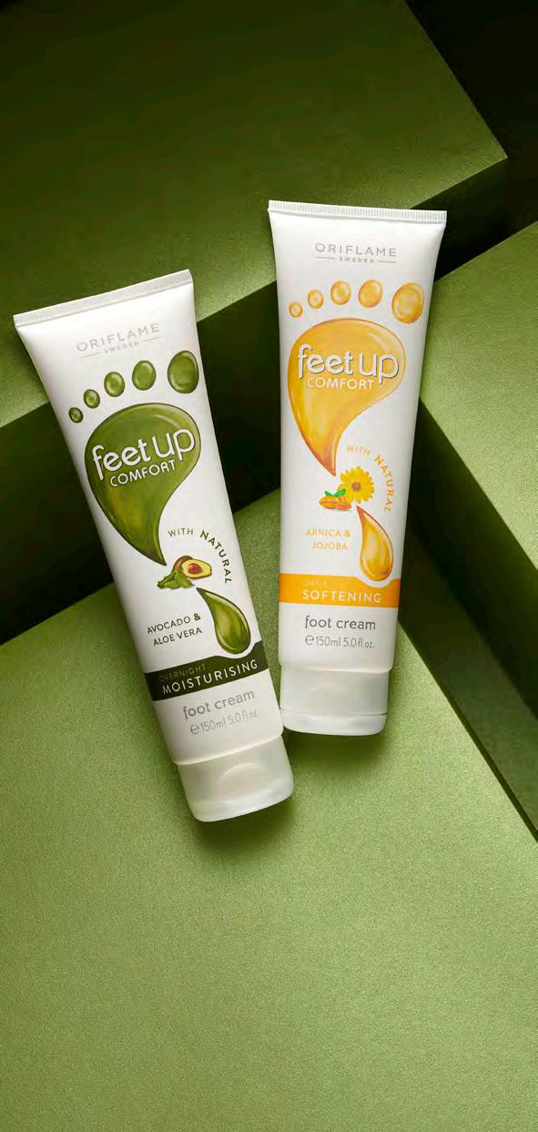 31347 31348 24 150 мл ДНЕВЕН КРЕМ ЗА КРАКА Омекотява и хидратира стъпалата. Обогатен с масло от жожоба и екстракт от арника. КРЕМ ЗА КРАКА С НОЩНО ДЕЙСТВИЕ Интензивно подхранва и успокоява кожата. Обогатен с масло от авокадо и сок от листата на алое вера. ВСЕКИ ЗА 5.60 лв. 34935 Хидратиращ крем за крака с нощно действие Feet Up Comfort 150 мл 14.00 лв. 32369 Омекотяващ крем за крака Feet Up Comfort 150 мл 14.00 лв. Поглезете ръцете и краката си през деня и през нощта с най-добрата грижа за подхранване на кожата! ДО-60 % ВСЕКИ ДЕН