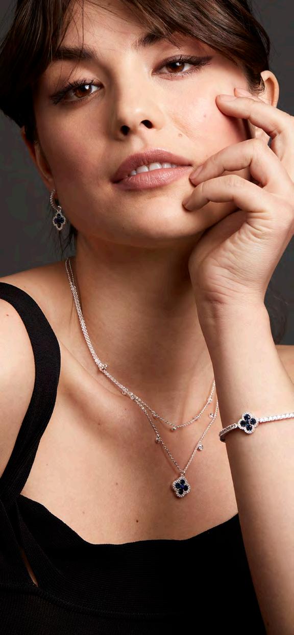 НОВО! ЛИМИТИРАНА КОЛЕКЦИЯ 32 Сребърно покритие СКЪПОЦЕННИЯТ КАМЪК НА ИСТОРИЯТА В продължение на векове Лапис Лазули е предпочитан заради яркия си тъмносин цвят - от времето на Египетските фараони до Ренесансова Италия. Синият лапис в тази колекция е във формата на детелинка, която сякаш е застинала, изненадана от ранната Северна зима. Детелинката може да се сваля, а халките могат да се носят и самостоятелно. Верижката на колието е с допълнителна дължина, за по-удобно позициониране. Със 151камъчета,всякоот които е поставянонаръкаисвнима н и е . Обици със син лапис Ice Clover Кубичен цирконий, месинг, сребърно покритие, естествен камък, стъкло. 2,75 x 1,29 см. 46275 94.99 лв. 71.99 лв. Гривна със син лапис Ice Clover Кубичен цирконий, месинг, сребърно покритие, естествен камък, стъкло. Дължина 18 см, удължение 2,5 см 46184 89.99 лв. 71.99 лв. Колие със син лапис Ice Clover Кубичен цирконий, месинг, сребърно покритие, естествен камък. Дължина на дългата верижка: 48 см, дължина на късата верижка: 43 см + удължител 7 см 46271 124.99 лв. 91.99 лв. 2 в 1