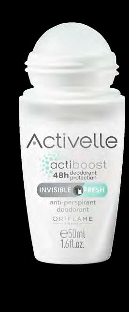 113 Рон-он против изпотяване Activelle Invisible Fresh 50 мл 41303 7.00 лв. 3.99 лв. Спрей дезодорант против изпотяване Activelle Extreme 150 мл 33147 12.00 лв. 6.99 лв. Рол-он против изпотяване Activelle Comfort 50 мл 33139 7.00 лв. 3.99 лв. УВЕРЕНО СВЕЖИ, УВЕРЕНО ЗАЩИТЕНИ † Клинично доказано. *клинични тестове **потребителски тест ДО 48ч КОНТРОЛ НАД НЕПРИЯТНИТЕ МИРИЗМИ† ДЕЗОДОРИРАЩ ЕФЕКТ ДО 72ч Осигурява дълготрайна свежест** Без бели петна** Обогатен с хидратиращи и грижовни към кожата съставки за максимален комфорт Максимална защита дори след физическа активност*