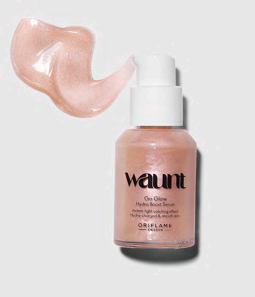 45 НОВО! Серум Waunt Go Glow Hydro 30 мл 41355 33.00 лв. 23.99 лв. РАЗКРИЙТЕ БЛЯСЪКА СИ *Потребителски тестван ПЕРЛЕН ГЕЛ-СЕРУМ ЗА НЕВЕРОЯТЕН БЛЯСЪК НА КОЖАТА МИГНОВЕН ОЗАРЯВАЩ ЕФЕКТ*Нанасяйте сутрин и вечер преди хидратиращия крем. Сипете количеството от 1-2 натискания на помпичката върху лицето и шията, докато попият напълно, като избягвате областта около очите. Подарете си озаряващо изживяване с лек серум, който хидратира, прикрива, озарява и осигурява ретуширащ ефект за кожата.