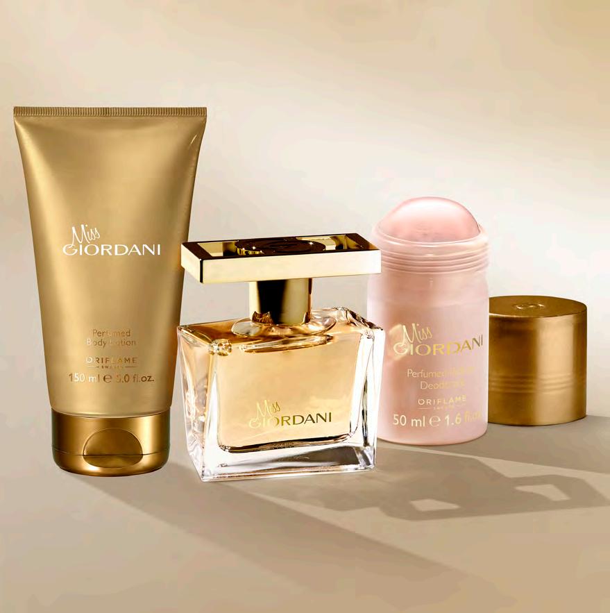 17 ВИСОКОКОНЦЕНТРИРАНА АРОМАТНА ФОРМУЛА сорбе от манго , нероли , черен пипер ПЛОДОВО-ФЛОРАЛЕН БУКЕТ Ароматен лосион за тяло Miss Giordani 150 мл 42883 13.00 лв. 6.99 лв. Рол-он дезодорант Miss Giordani 50 мл 34079 8.00 лв. 3.99 лв. Парфюмна вода Miss Giordani 50 мл 30399 54.00 лв. 21.99 лв. ЗВЕЗДНА СЪСТАВКА Нотките нероли оставят след себе си блестяща диря на увереност, жизнерадостна енергия и щипка изтънченост, постигната с лекота.
