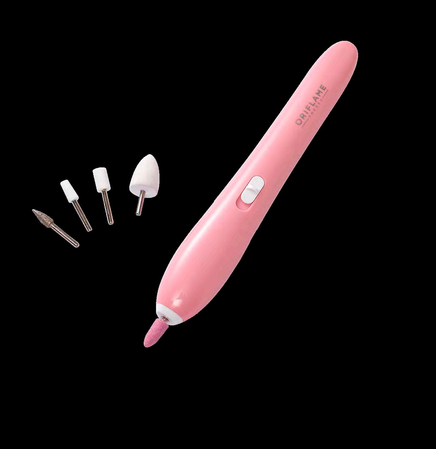 блясък. С практична кутийка за съхранение на всичките 5 приставки Професионален маникюр у дома Изгладете ръбчетата с пилата за нокти. Използвайте страна 2, за да премахнете грубите участъци, и страните 3 & 4, за да накарате ноктите Ви да заблестят.