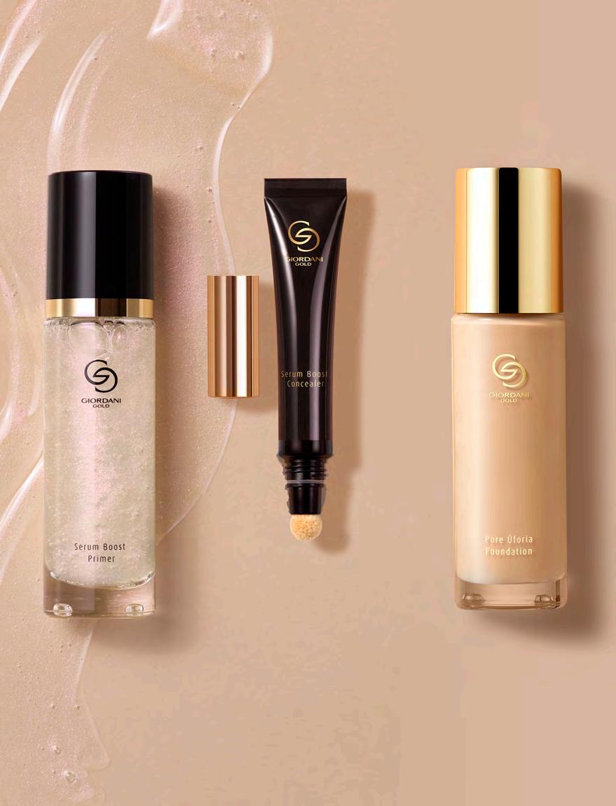 15 Създайте гладка основа за нанасяне на грима, озарете кожата и удължете трайността на фон дьо тена. Използвайте заобления апликатор с пухкаво връхче и се доверете на по-голямата покривност, за да се справите с всички несъвършенства на кожата. Радвайте се на безупречен, сияйен завършек, благодарение на озаряващата формула на фон дьо тена. 42367 Caramel 42366 Amber 42365 Almond 42364 Golden Sand 42363 Beige 42362 Vanilla 42361 Ivory 42360 Porcelain Серум-основа Giordani Gold 30 мл 42118 29.00 лв. 14.99 лв. Серум-коректор Giordani Gold 10 мл 20.00 лв. 10.99 лв. Фон дьо тен Giordani Gold Pure Úforia 30 мл 31.00 лв. 13.99 лв. 41107 Light 41108 Medium Стъпка 1: Основа Стъпка 2: Коректор Стъпка 3: Фон дьо тен НОВО!