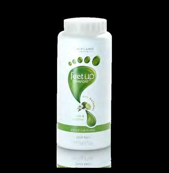 115 Интензивна хидратация още след първото нанасяне Подхранва и успокоява сухата кожа и ѝ придава нежен аромат. Дезодорираща пудра за крака Feet Up Comfort 75 г 32374 8.00 лв. 5.99 лв. Подхранващ крем за крака с масло от тиквени семки Feet Up 75 мл 34731 8.50 лв. Освежаващ крем за крака Feet Up 75 мл 32644 9.00 лв. Освежете стъпалата и ги поддържайте сухи! С освежаващ лайм и хидратиращ екстракт от памучен прашец Помага за абсорбиране на изпотяването 4.99 лв. Разкошна гладкост & мекота КРЕМ ЗА КРАКА КРЕМ ЗА КРАКА НОВО! ВСЕКИ ЗА