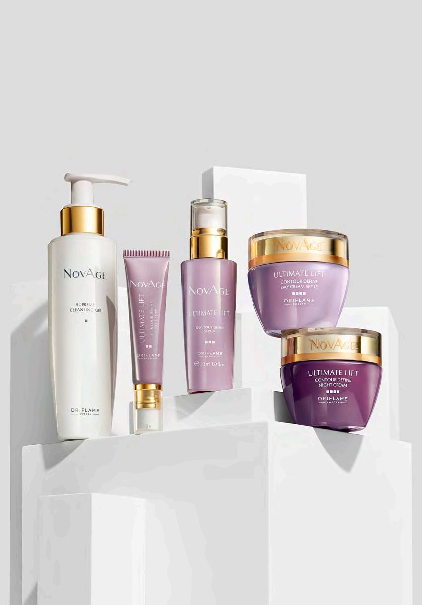 46 Повдигане, стягане и ревитализиране НА ФОКУС: ЕЖЕДНЕВНАТА ГРИЖА ЗА КОЖАТА Нанасяйте серума преди хидратиращите продукти, за да подсилите действието им и да подпомогнете стягането на кожата и намаляването на бръчките. ПОЧИСТВАНЕ Почиствайте кожата два пъти дневно, за да отстраните замърсяванията и да я подготвите за абсорбирането на следващите продукти от програмата. ПОВЕЧЕ ЕФЕКТИВНОСТ ХИДРАТАЦИЯ Нанасяйте леката формула на околоочния крем, за да стегнете контурите, да изгладите бръчките и да пробудите кожата около очите. ПРИЦЕЛВАНЕ Използвайте дневен крем, за да дефинирате контурите, да ревитализирате и предпазите кожата и нощен крем, за да я стегнете и подхраните. Когато кожата започне да губи своята еластичност и да става отпусната, тя има нужда от освежаваща грижа, която да ѝ помогне да запази младежкия си вид. Комплектът NovAge Ultimate Lift отговаря именно на тези нужди! Той подпомага производството на колаген и еластин за по-добър вид на кожата и я защитава от свободните радикали, с цел забавяне на процесите на стареене. Изпълнявайте всички стъпки и ще видите до какви резултати ще ви доведе правилно структурираната грижа за кожата!