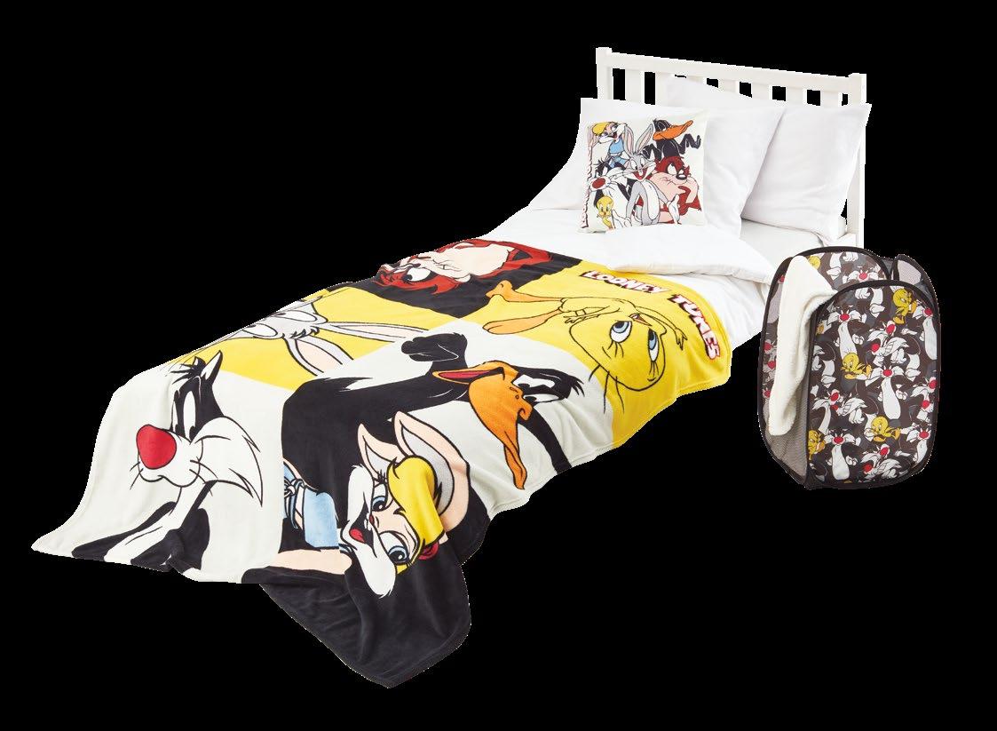 18лв. Комплект от одеяло и възглавница с принт Looney Tunes, комплектът включва: одеяло, размери: 130 х 170 см, възглавница, размери: 40 х 40 см 25лв. Комплект спално бельо 100% памук с принт Looney Tunes, комплектът включва: калъфка за завивка, размери: 140 х 200 см и калъфка за възглавница, размери: 70 х 80 см 5лв. Сгъваема кутия с принт Looney Tunes, размери: 30 х 30 х 30 см 8лв. Възглавница с принт Looney Tunes, размери: 40 х 40 см 6лв.Сгъваем кош с принт Looney Tunes, размери: 35 х 35 х 55 см LOONEY TUNES and all related characters and elements © & ™ Warner Bros. Entertainment Inc. WB SHIELD: © & ™ WBEI. (s22) SH025 179771 TESTEX SH025 179771 TESTEX 2015OK0629 AITEX офертата е валидна от 18.08.2022 до 31.08.2022 усетивлюбикачеството,севцената