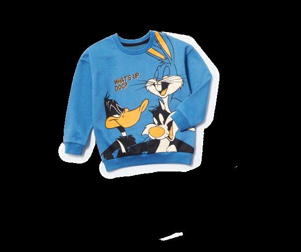 610лв.лв.Блуза 100% памук за момчета, с принт Looney Tunes, размери: 104-134 см 8лв. 100%Блузапамук за момчета, с размери:LooneyпринтTunes,134-170 см 15лв. 100%Долнищепамук за момчета, с връзки на талията, с джобове и принт Looney размери:Tunes,134-170 см 6лв.от Блуза 100% памук за момичета, с обло деколте и принт Looney Tunes, налични размери: 104-134 см - 6 лв. или 134-170 см - 8 лв. 15лв. 100%Суитшъртпамук за момчета, с принт Looney Tunes, размери: 134-170 см LOONEY TUNES and all related characters and elements © & ™ Warner Bros. Entertainment Inc. WB SHIELD: © & ™ WBEI. (s22) 100%илиСуитшъртдолнищепамук за момчета, с принт Looney Tunes, размери: 104-134 см наличнасъщо: наличнасъщо: наличенсъщо: наличнасъщо:наличносъщо: Всички продукти от брошурата са наши хит предложения. Търсете този символ, за да ги откриете в магазините ни.