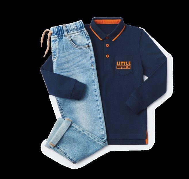 10лв.6лв.10лв. 15лв. Рокля с връзки на гърба, с набор 104-134размери:карирана,талията,насм Блуза 100% памук за момчета, с яка и джоб на гърдите с принт, размери: 104-134 см Дънки с еластан, за момчета, с ластичен колан с връзки на талията, с джобове и подвити крачоли, размери: 104-134 см Риза 100% памук за момчета, с яка и размери:маншети,116-134см 15лв. Панталони 98% памук и 2% еластан, за момчета, с джобове и подвити крачоли, размери: 104-134 см 6лв. Пола* тюлена, с ластиксъсподплата,сребристнаталиятаиблестящпринт,размери:104-134см * Продуктът ще бъде достъпен само в някои от нашите магазини. Всички продукти от брошурата са наши хит предложения. Търсете този символ, за да ги откриете в магазините ни.