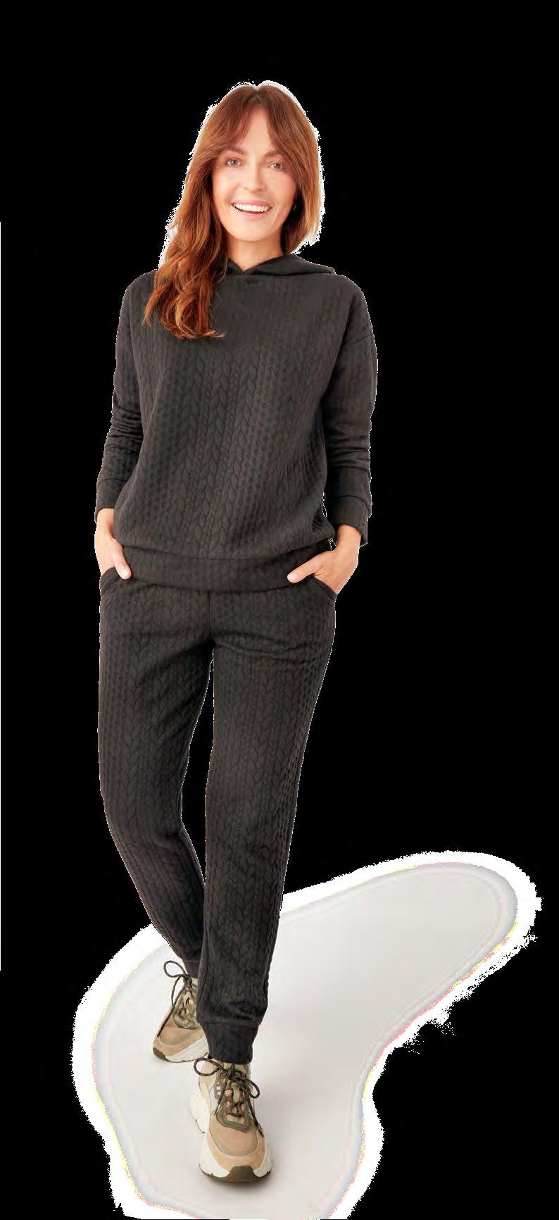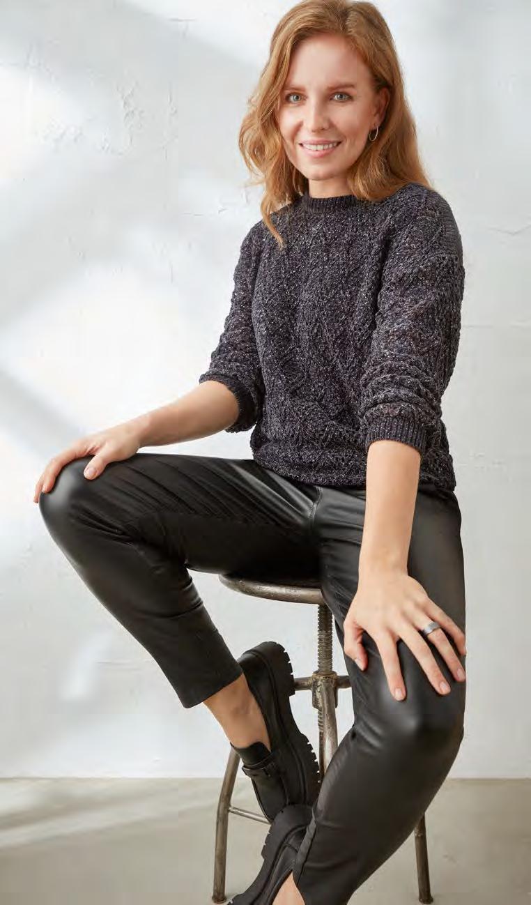 15лв. 18лв. 18лв. 18лв. 18лв. 20лв. Блуза с овално деколте и удължен гръб, едноцветна, размери: S-XXXL Пола средна дължина с джобове и кариран принт, размери: S-XXL Суитшърт с качулка с еластични маншети и подгъв, с релефен десен шеврон, размери: S-XXL Спортно долнище с джобове и ластични маншети, с релефен десен шеврон, размери: S-XXL Пуловер едра плетка, прежда с ламе, размери: S-XXL Панталон кожен, с ластик на талията и джобове, едноцветен, размери: 36-44 усети качеството, влюби се в цената