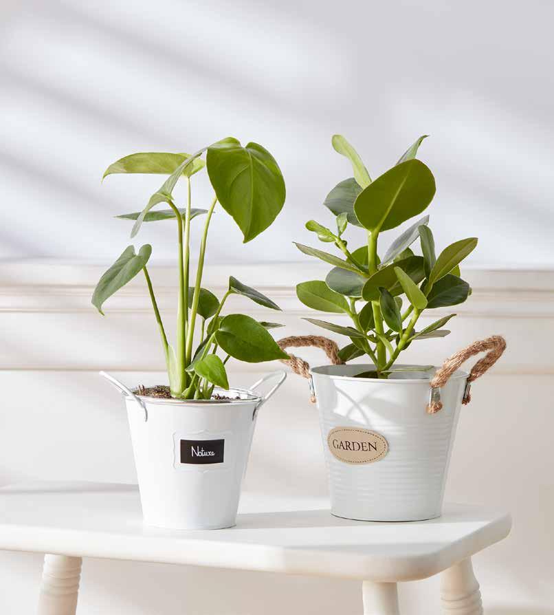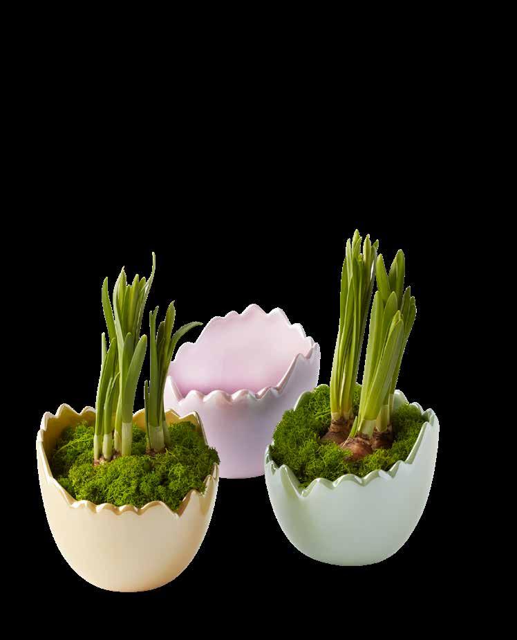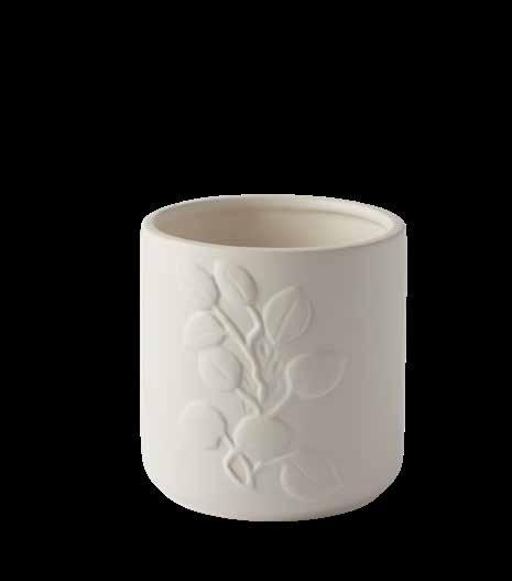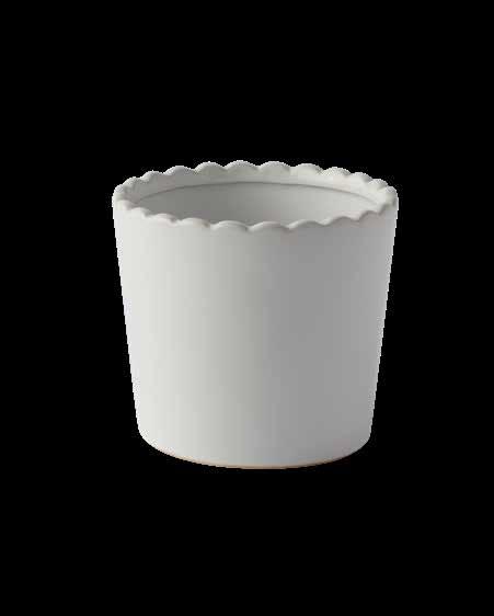 Keramik, verfügbare Varianten: Blumentopf, mit geprägtem Muster, ø 12 cm, Höhe: 12,5 cm – 4 €, Übertopf, mit gezahntem Rand, ø 13,5 cm, Höhe: 13,5 cm – 4,50 €