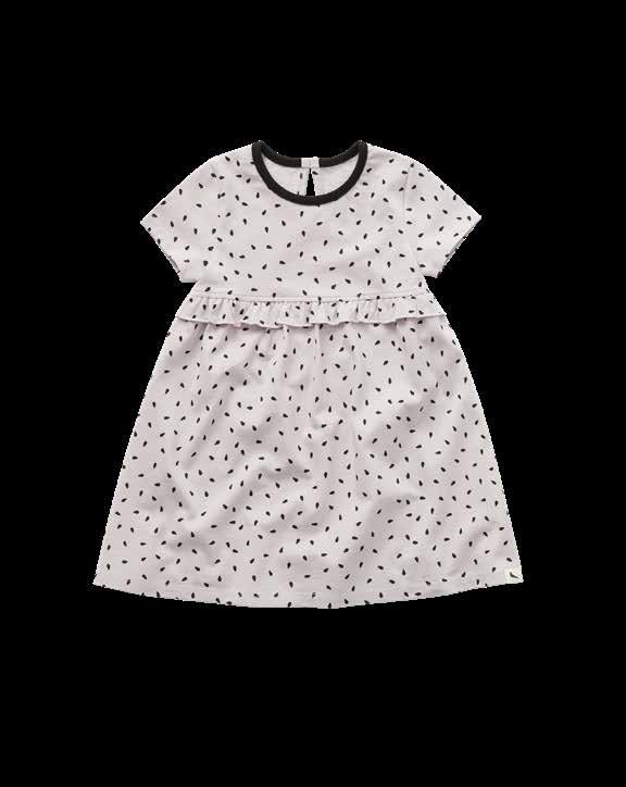 Kleid 100% Bio-Baumwolle für Baby-Mädchen, taillenbetont, geraffter Rock, Rüschen und Aufdruck, Größen: 74-98 cm