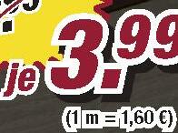 KW 06/23 S. 20 Genau den brauch´ ich! Ihr optimaler Bodenbelag: Bodenschutzmatte mit rutschhemmender Haftschicht schlag- und abriebfest Sockelleiste ca. 58 mm hoch und 250 cm lang 5945222/00-02 UVP *** 7.95 99 Stufenmatte Breite ca. 4 m 5038070/01-02 UVP *** 10. 3.99 m² Breiten ca. 2, 3 und 4 m, Stärke ca. 1,2 mm 5964209/01, 5964210/01, 5964211/01 UVP *** 8.954. 99 m² Breiten ca. 4 und 5 m 4968866/03,09, 4968870/03,09 UVP *** 12.-4. 99 m² Breite ca. 4 m 5943333/00 UVP *** 12.95 6.99 m² Breiten ca. 4 und 5 m 5948403/00-01, 5948405/00-01 UVP *** 14.959.99 m² Breite ca. 4 m 5968442/00 UVP *** 24.9514.99 m² Breiten ca. 2, 3 und 4 m, Stärke ca. 2,0 mm 5013021/00-02 UVP *** 9.95 5.99 m² Breiten ca. 2, 3 und 4 m, Stärke ca. 2,4 mm 5074630/00, 5063189/00, 5074631/00 UVP *** 14.955.99 m² Breiten ca. 2, 3 und 4 m, Stärke ca. 2,8 mm 5946370/00, 5946369/00, 5946371/01 UVP *** 16958.99 m² Breiten ca. 2, 3 und 4 m, Stärke ca. 3,5 mm 5540400/02, 5540401/02, 5540653/01 UVP *** 14.959.99 m² UVP *** 2.99 1.99 je ca. 28 x 65 cm 5017968/00-01 etc. selbstklebend geringe Nutzung Privatbereich mittlere Nutzung Privatbereich starke Nutzung Privatbereich mittlere Nutzung gewerblicher Bereich ***Unverbindliche Preisempfehlung des Herstellers. JETZT RICHTIG COOL SPAREN! Teppichboden Vinylboden 19.99 ca. 91 x 121 cm 4950427/00 29.99 ca. 60 x 80 cm 5008382/00 15.99 9.99